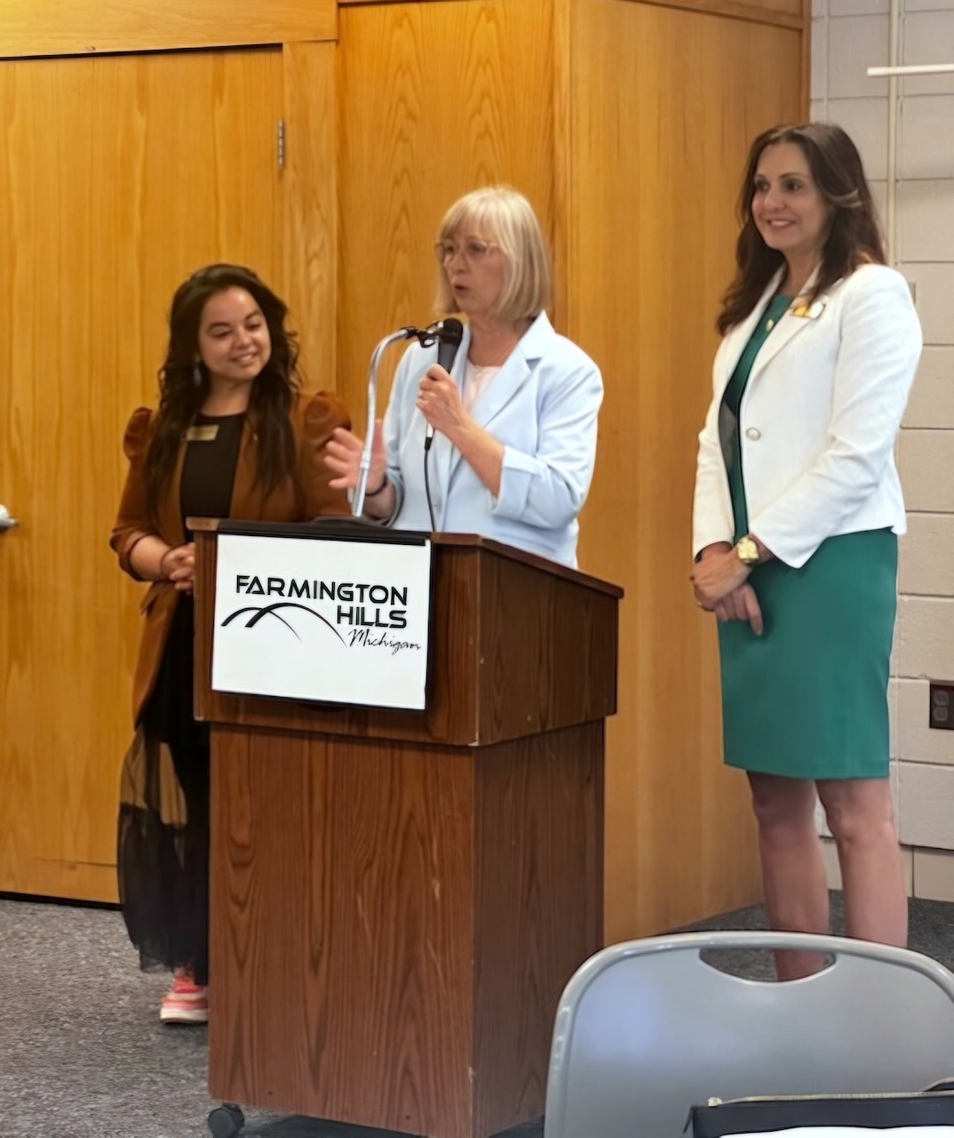 Senator Bayer, Congresswoman Debbie Dingell, Rep. Kelly Breen, and Oakland County Commissioner Gwen Markham at Novi City Hall.