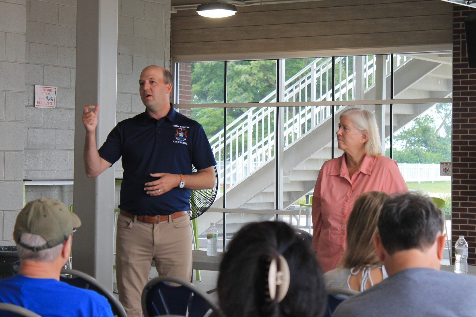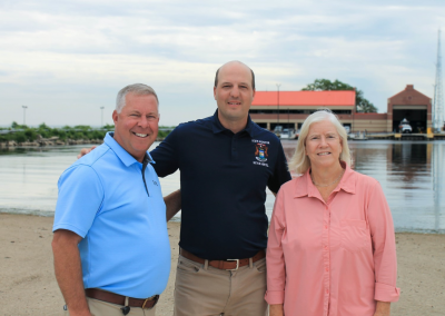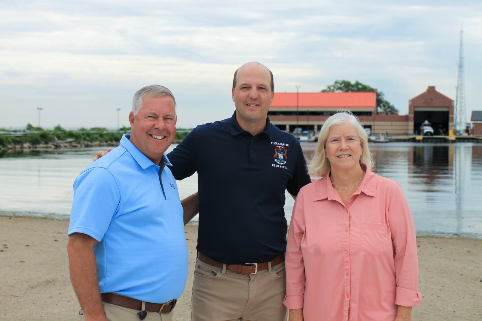 Sen. Kevin Hertel is joined by Macomb County Public Works Commissioner Candice Miller and St. Clair Shores Mayor Kip Walby for a conversation by the lake on July 29, 2024, where the bipartisan trio discussed their efforts to improve local water infrastructure and protect Lake St. Clair. Photo credit: Megan Dombrowski, Michigan Senate Democrats